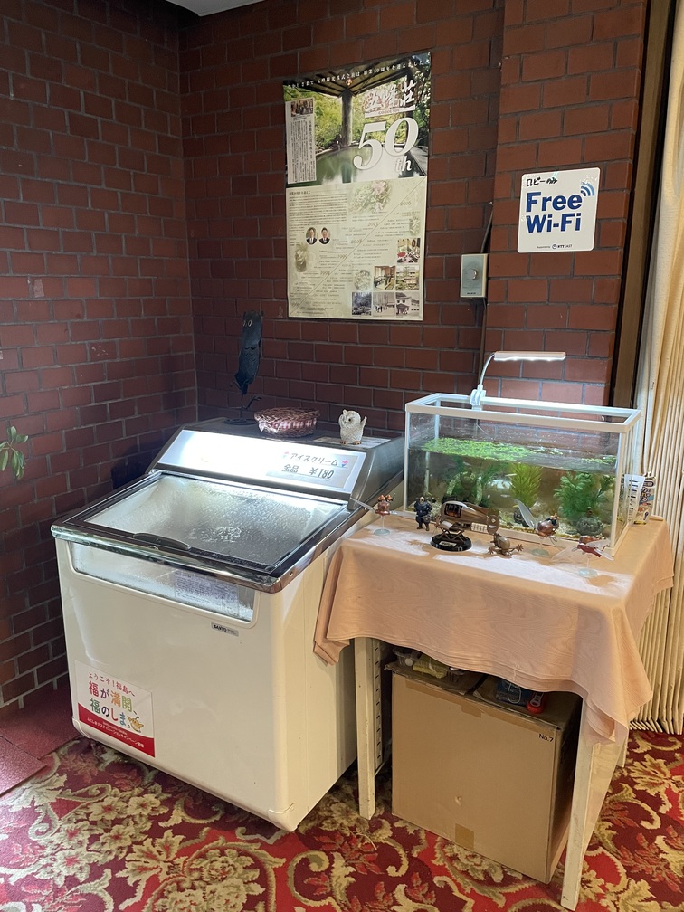 1階のフロアには、アイスの冷凍庫と自動販売機があります。