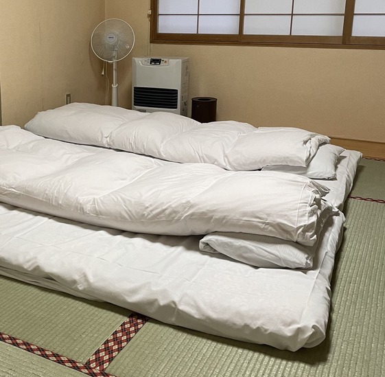 (左)お布団は、夕食の間に敷いてくださいました。