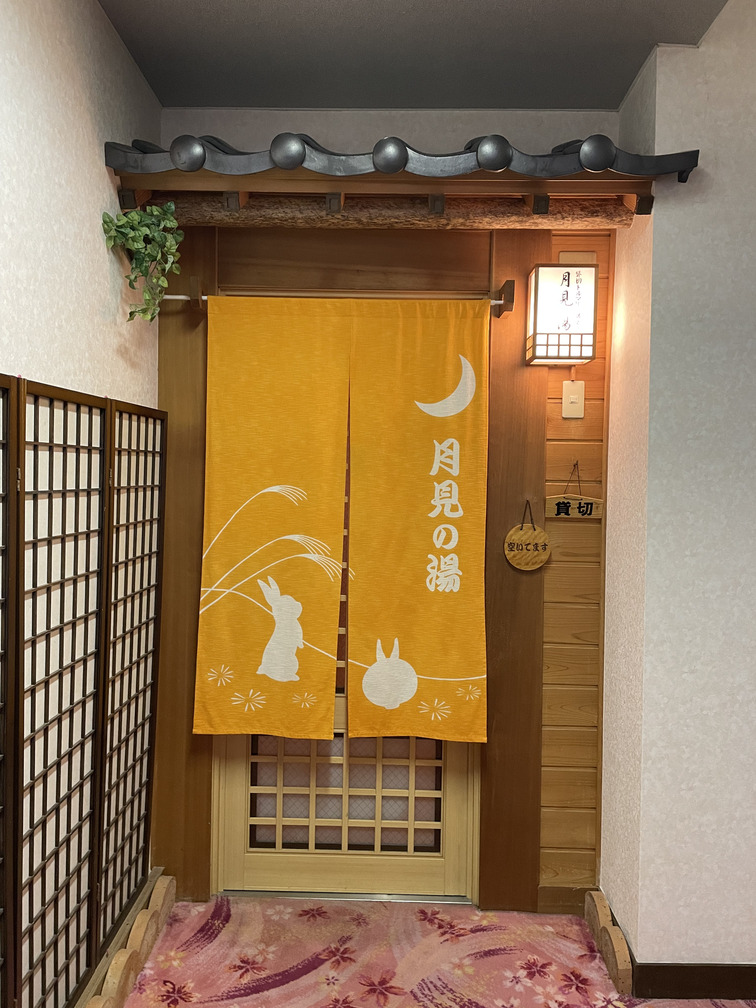 (右)貸切露天・月見の湯入口です。
