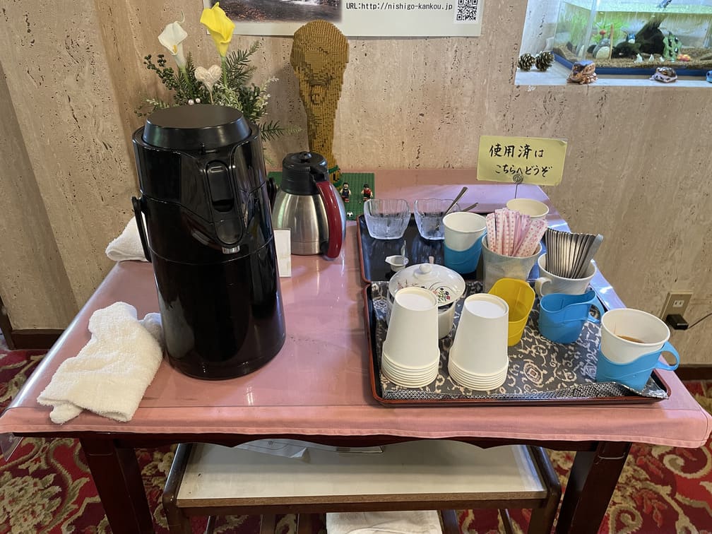 朝食後、1階ロビーに無料のコーヒーの用意。