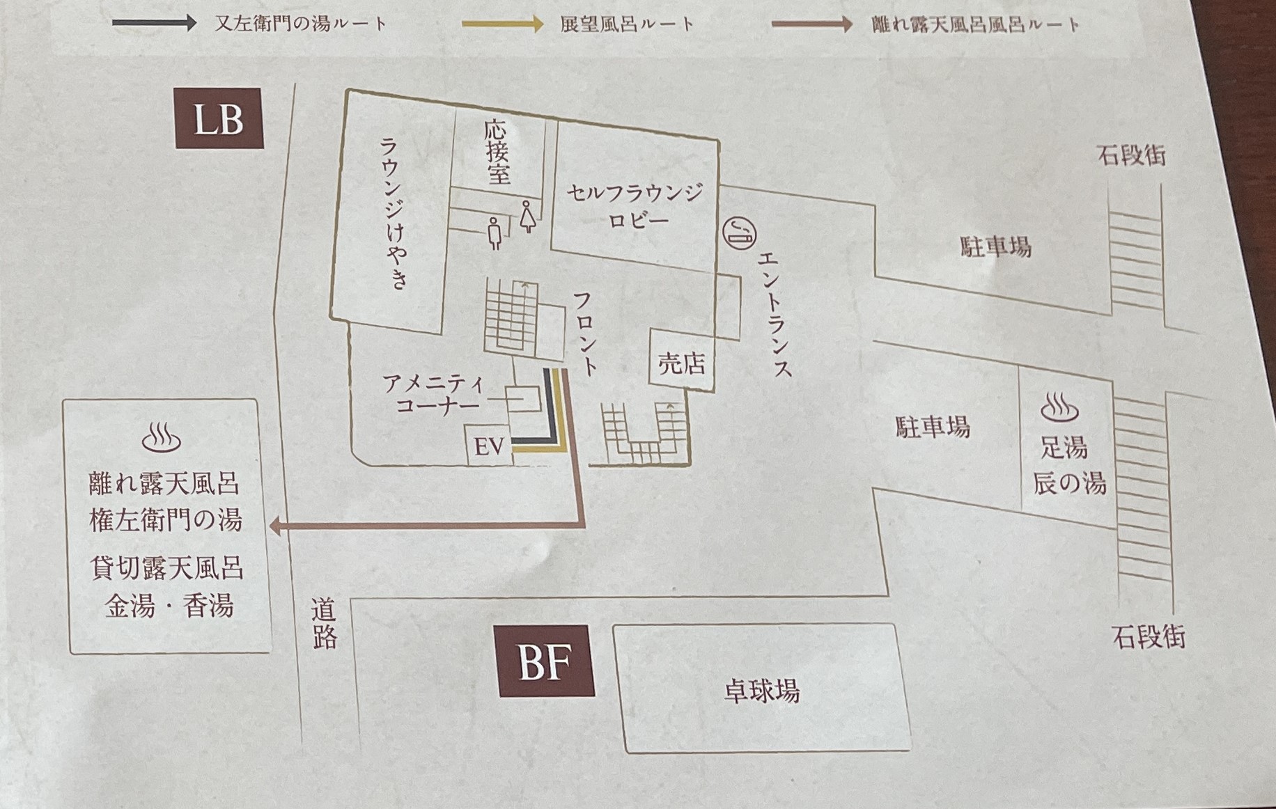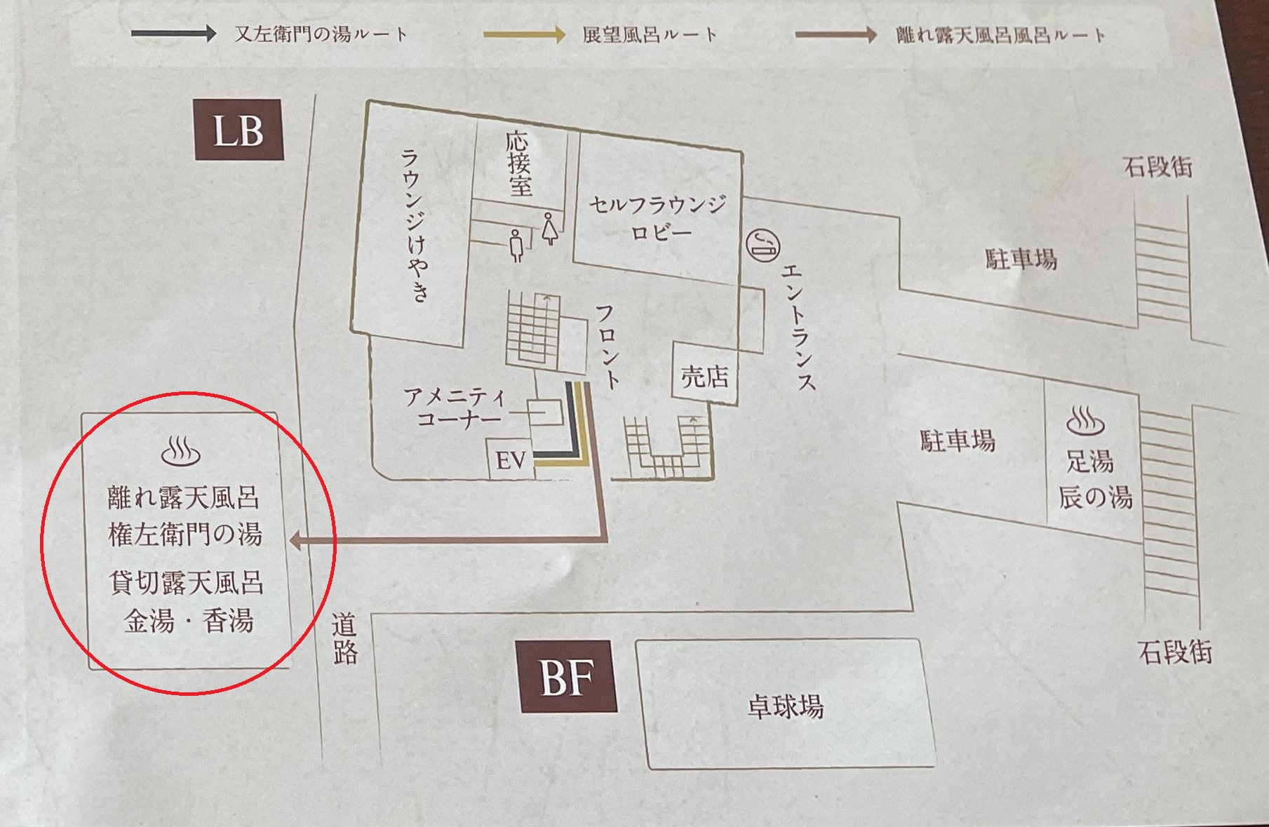 離れの貸切露天風呂は、フロントから離れているため早めにフロントへ向かいましょう。ギリギリにいくとバタバタして入湯時間が短くなります。