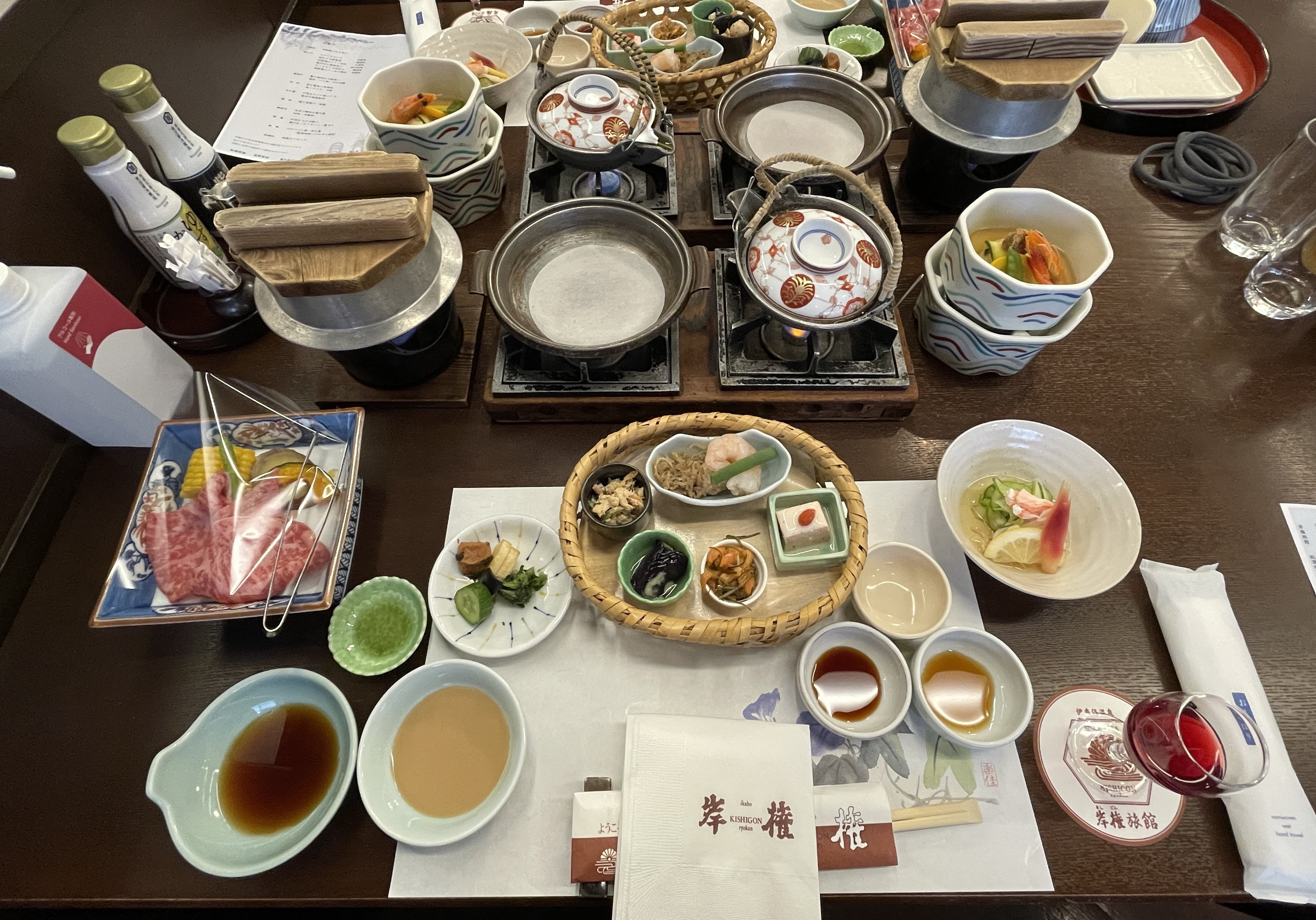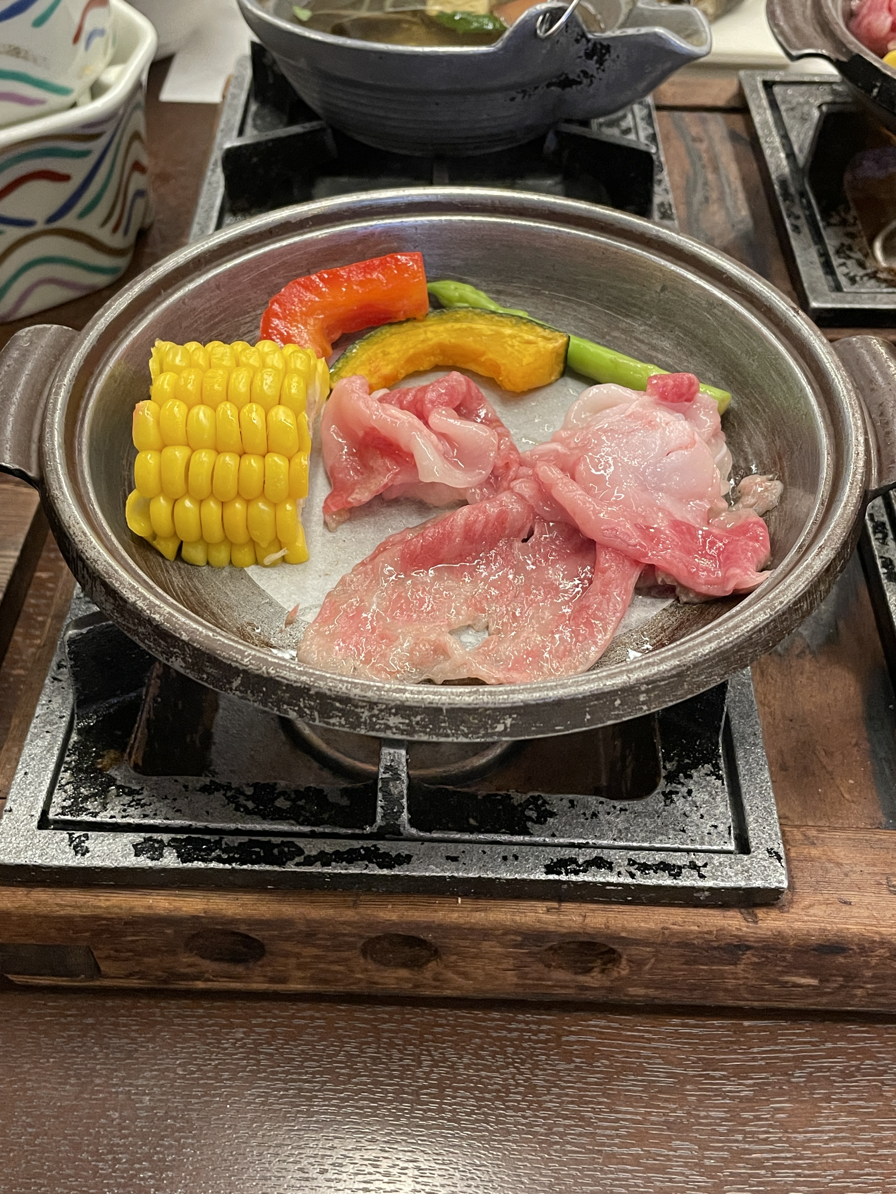 ご夕食メインは「鮎の塩焼き+上州牛の焼きしゃぶ」夏の味覚を堪能。