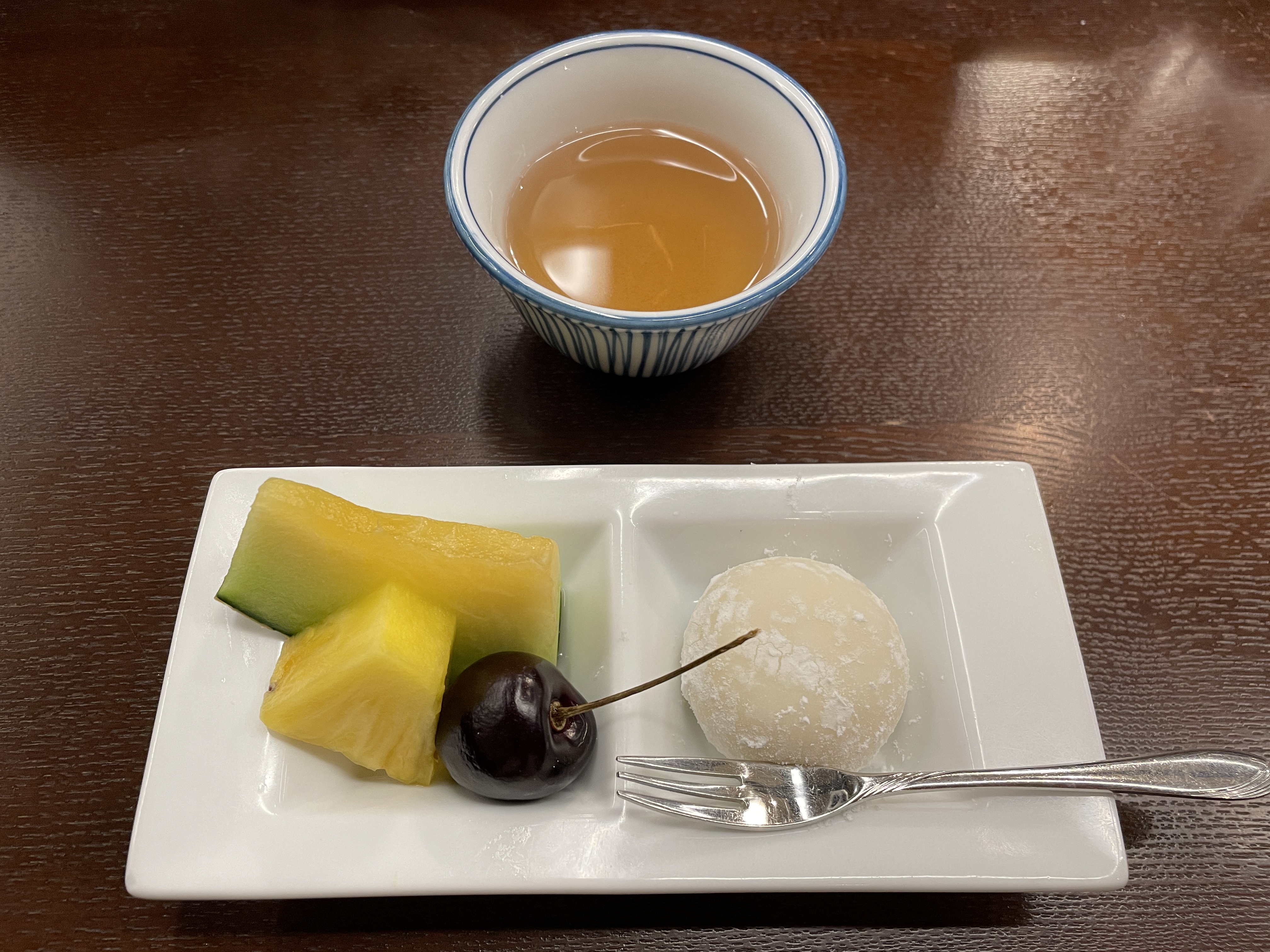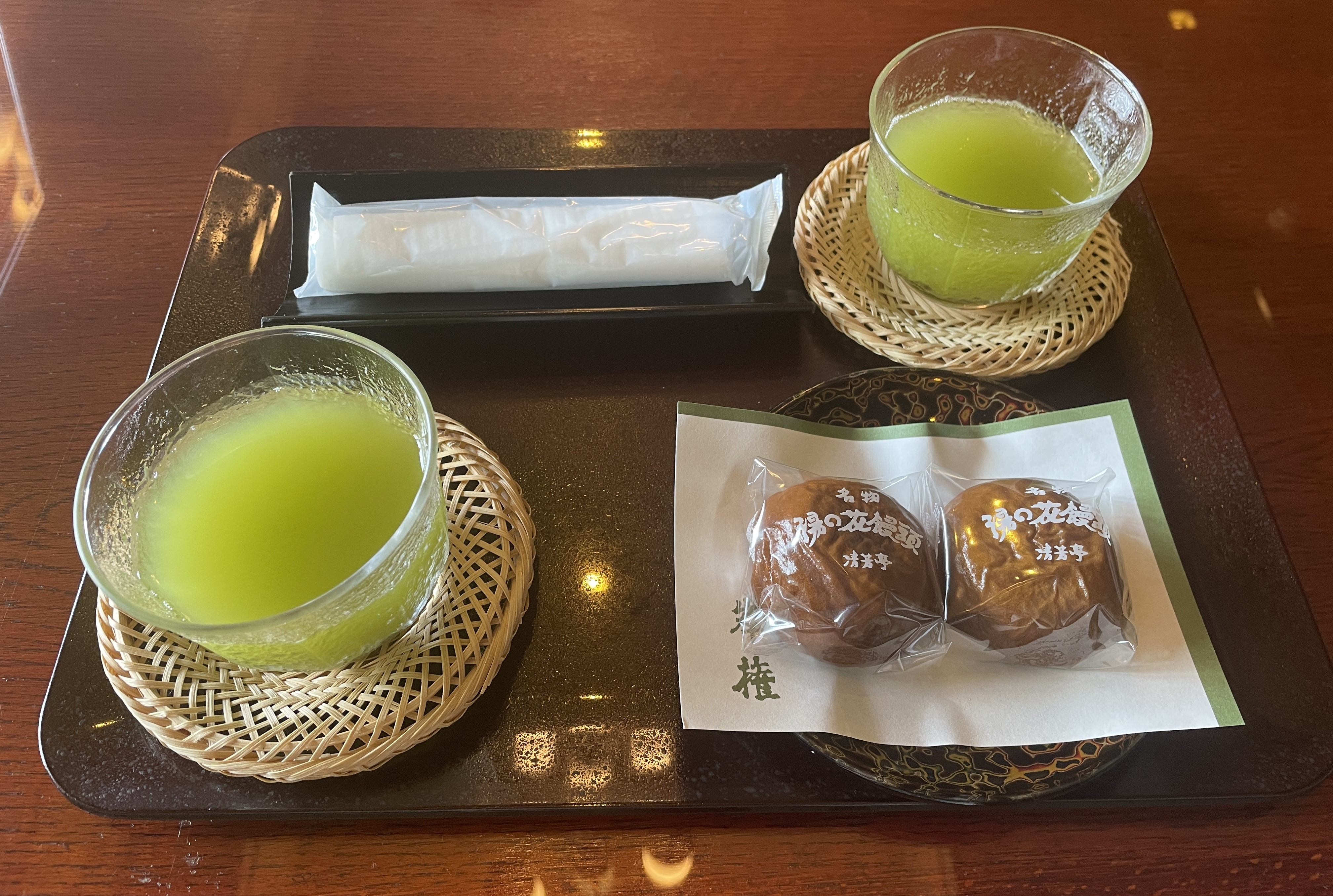 ウエルカムドリンクと湯の花饅頭をいただきました。