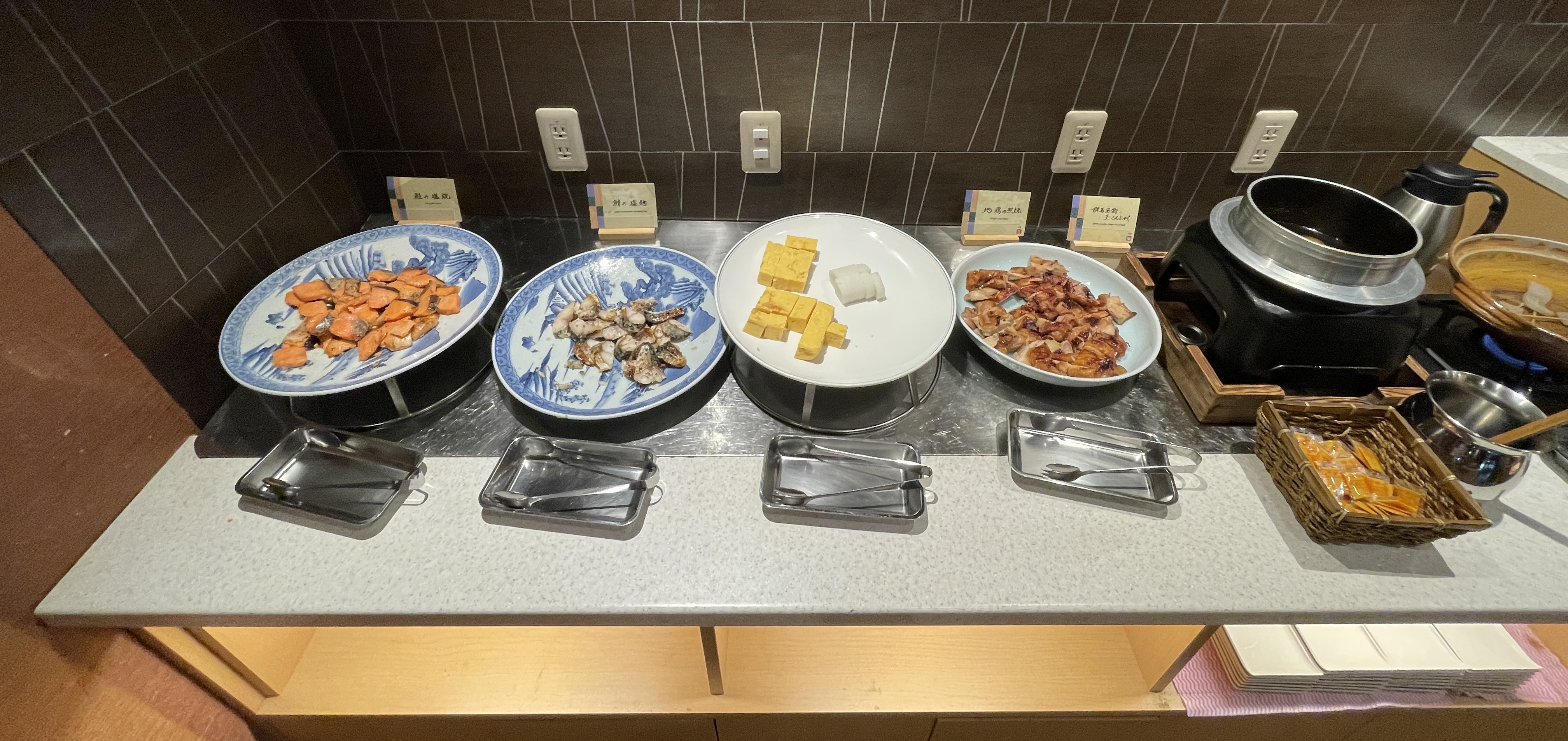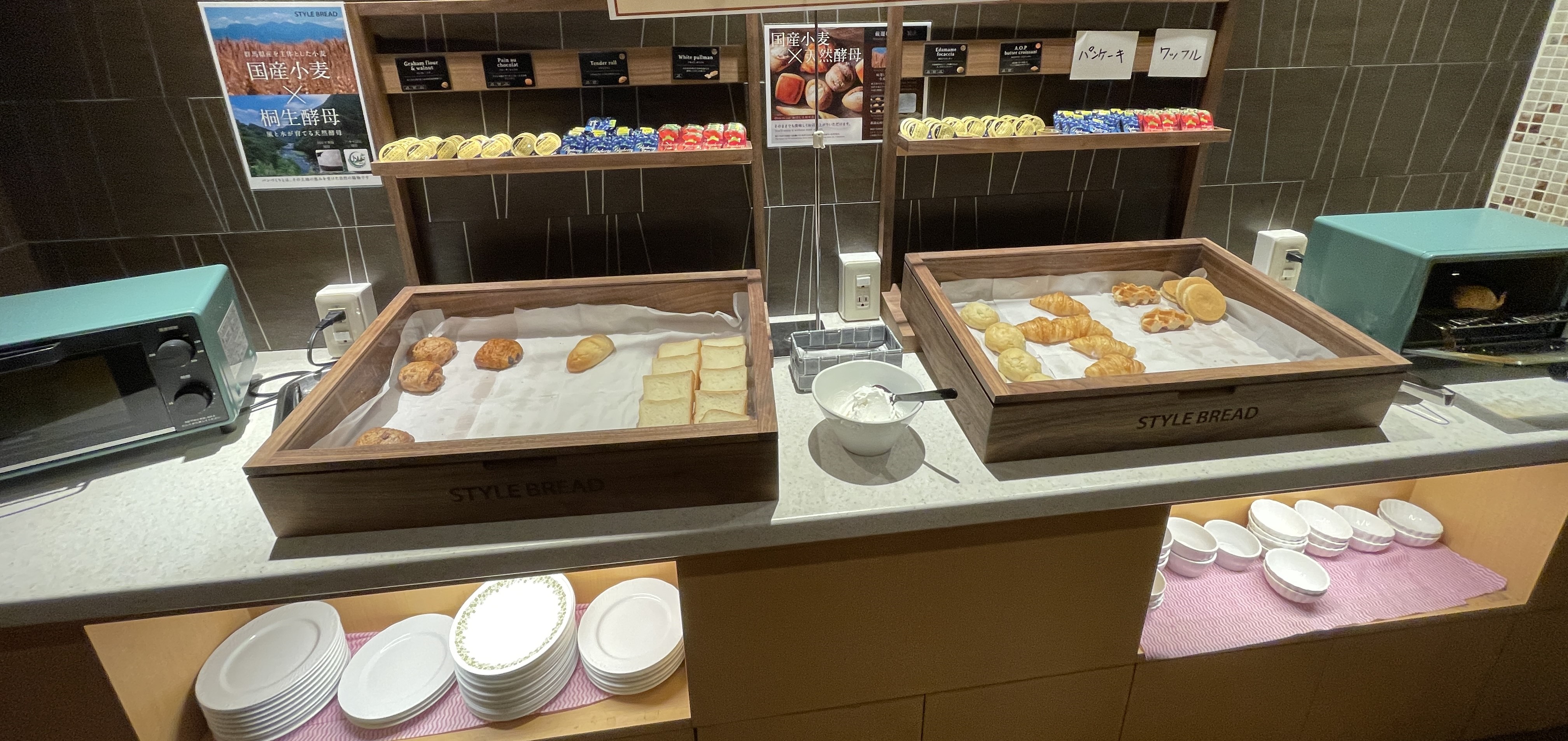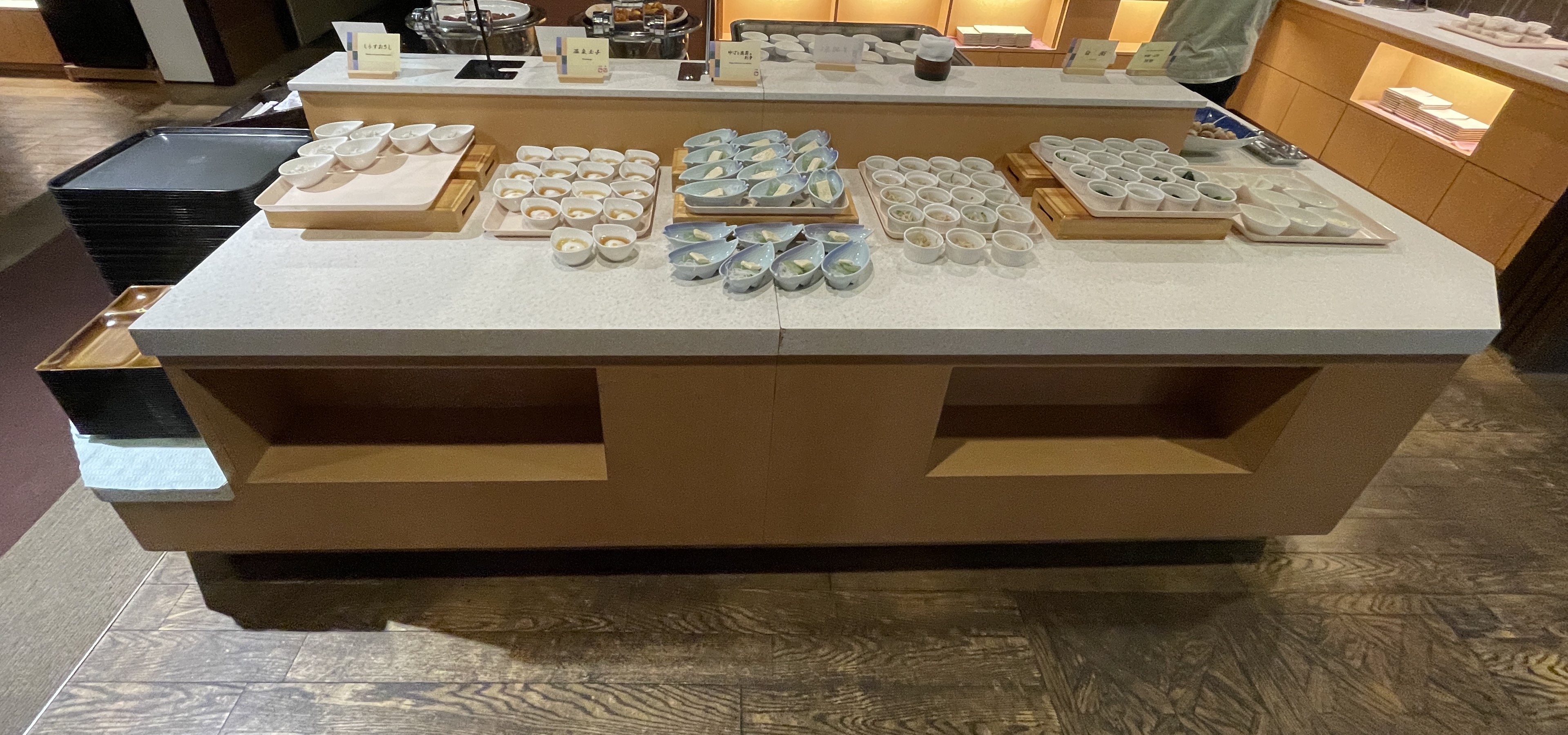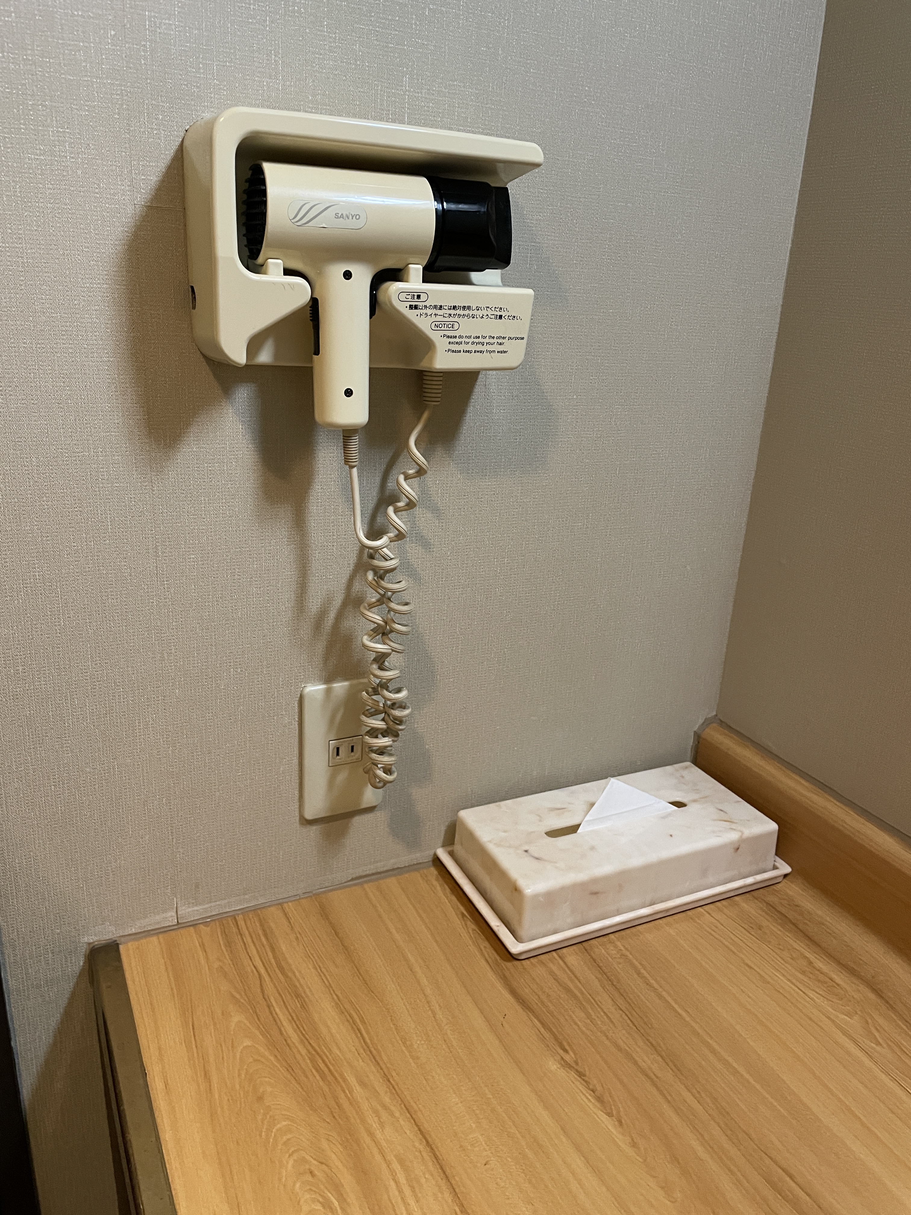 お部屋にアメニティが置いてありませんので、ロビー階でいただいてお部屋へ持ち帰りましょう。大人用の歯ブラシはお部屋にありますよ。