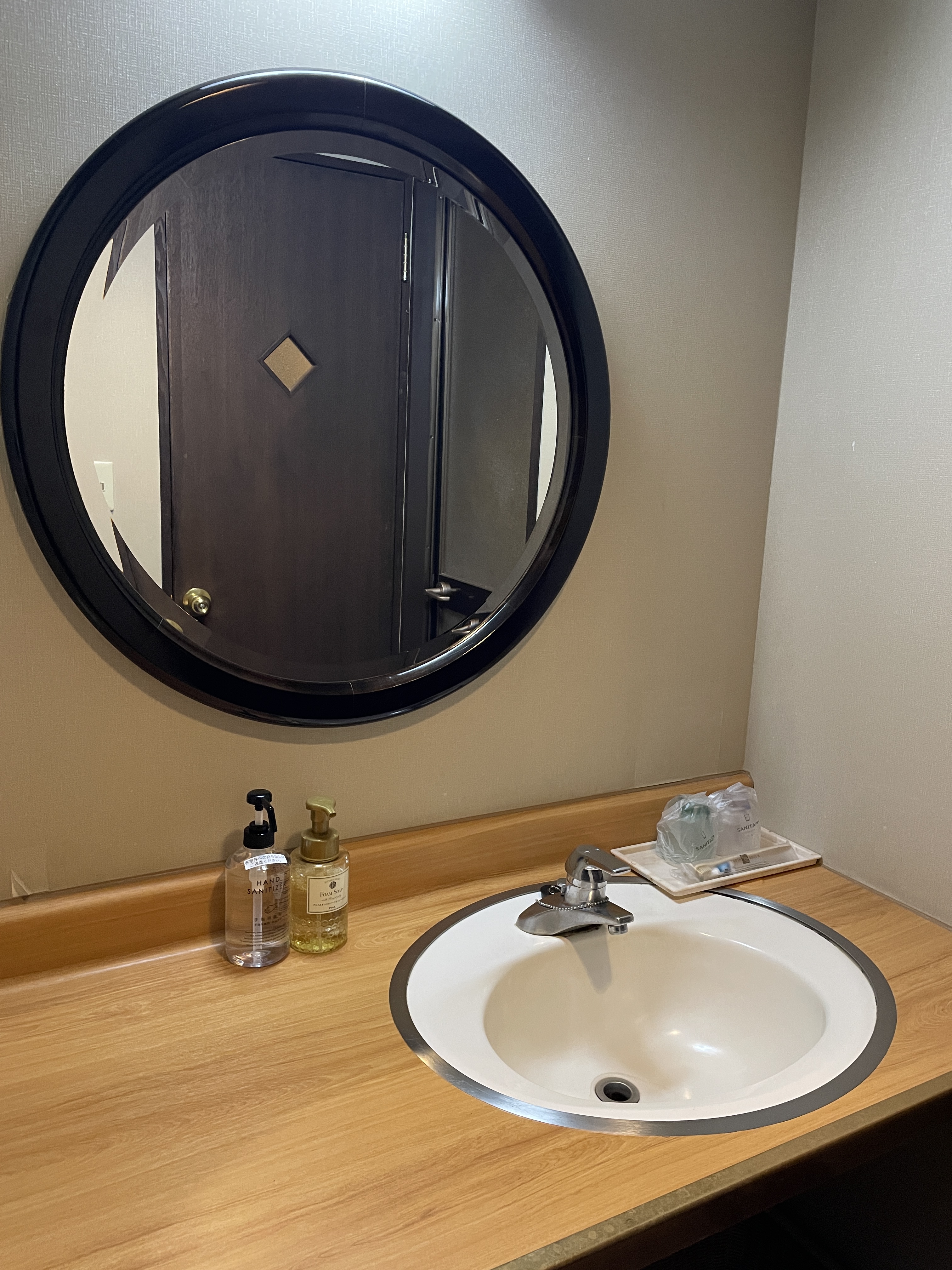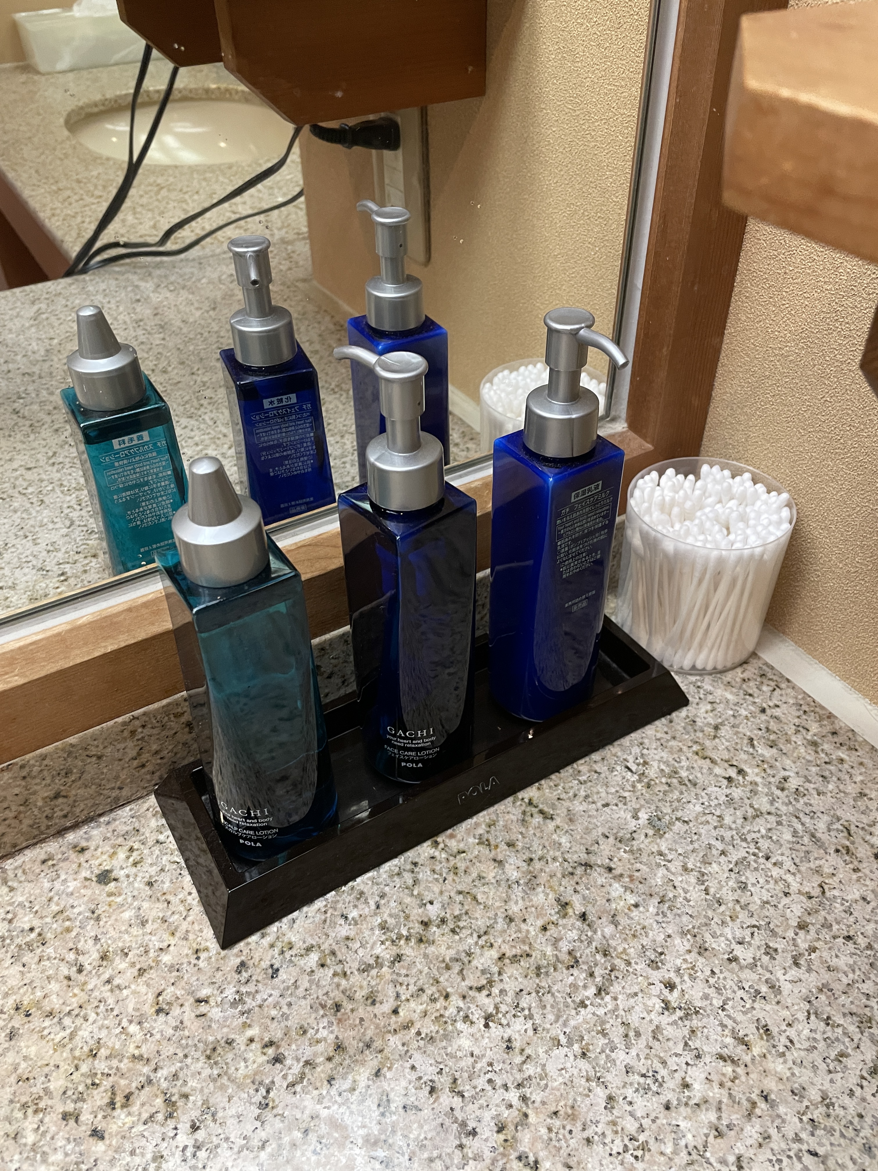洗面所。モイスチャーローション、モイスチャーミルクなど一通りあり。