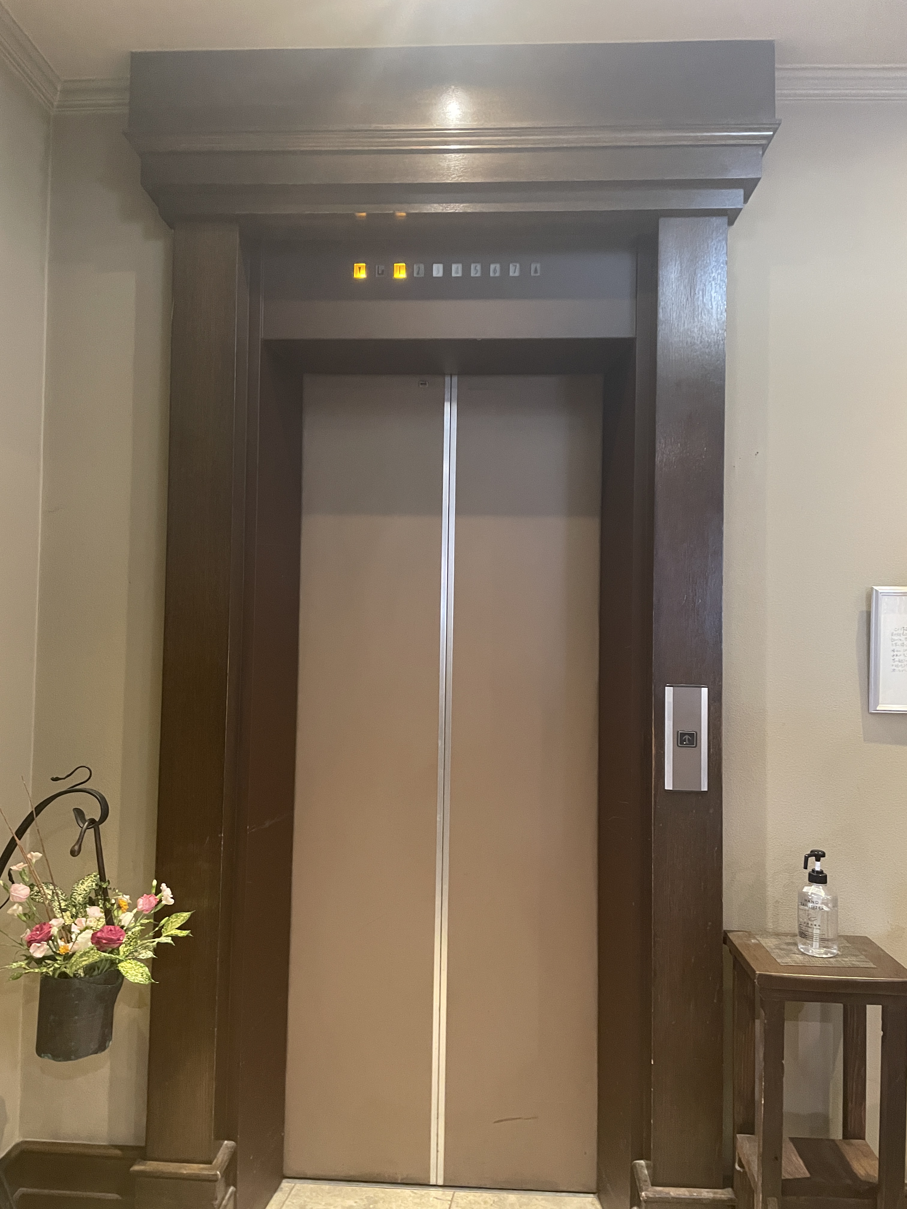 (左)本館の客室用エレベーター。こちらのエレベーターを使用してお部屋へむかいます。
