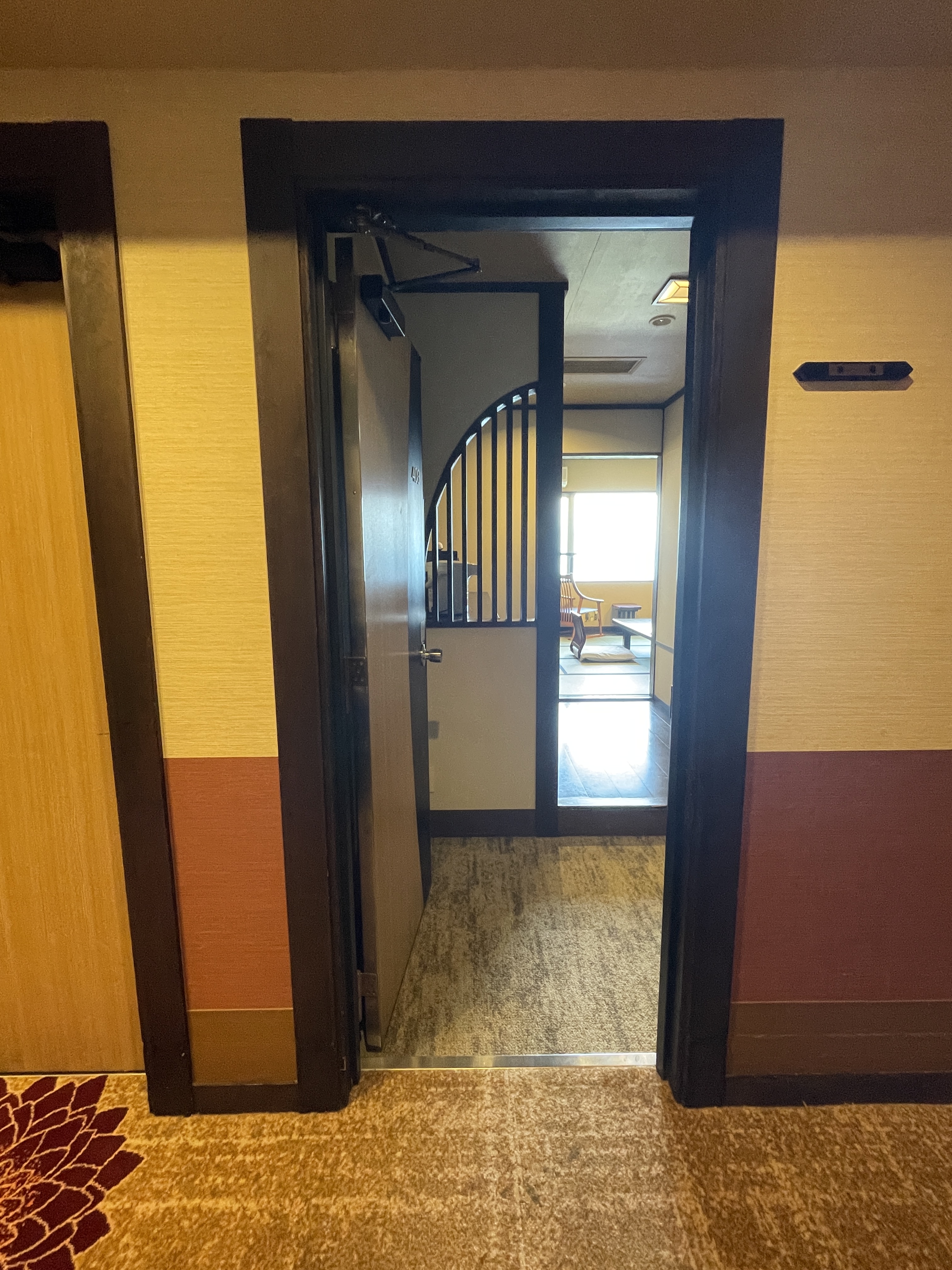 (左)LBのフロアに離れの露天風呂のドアがあります。