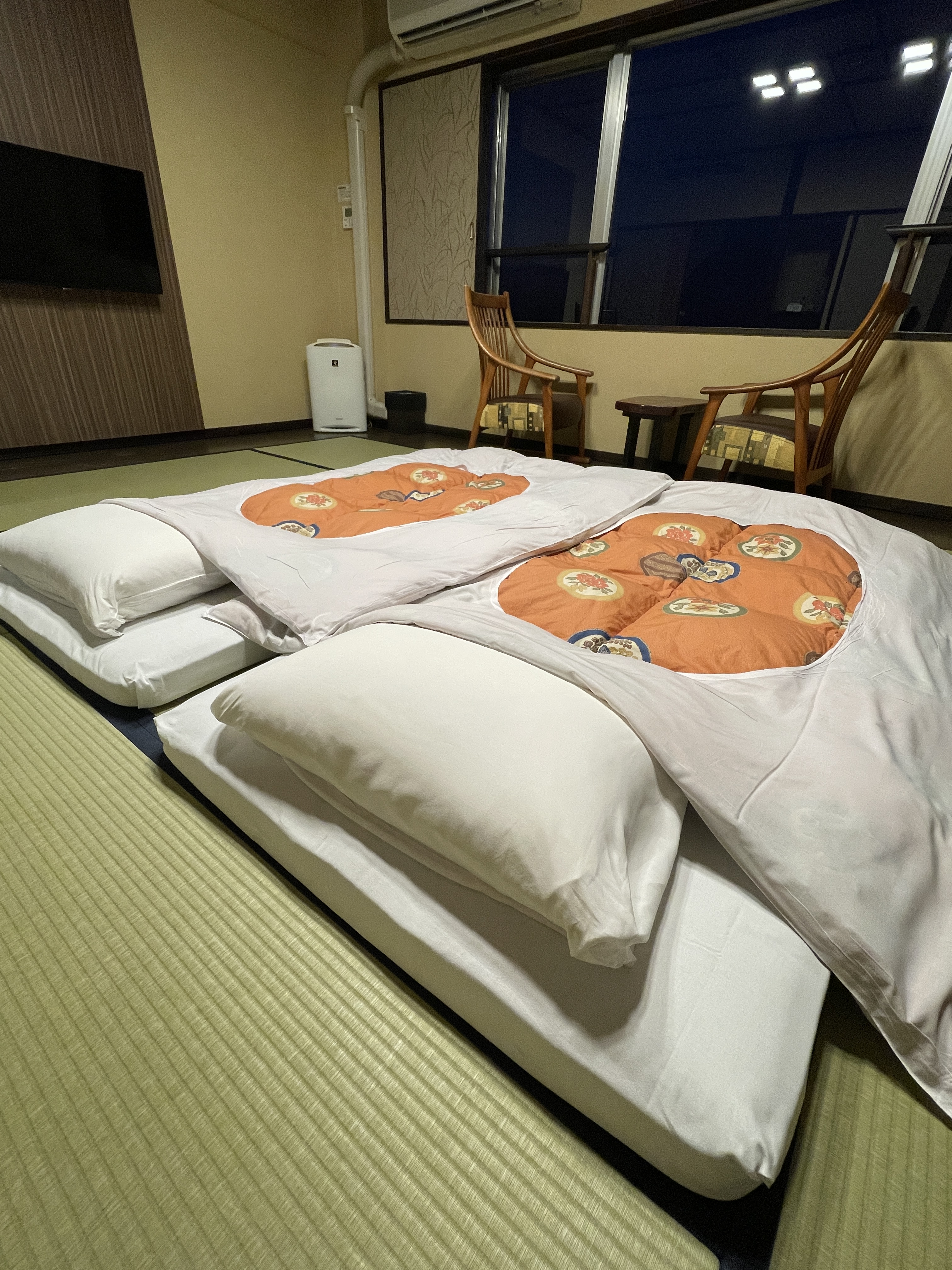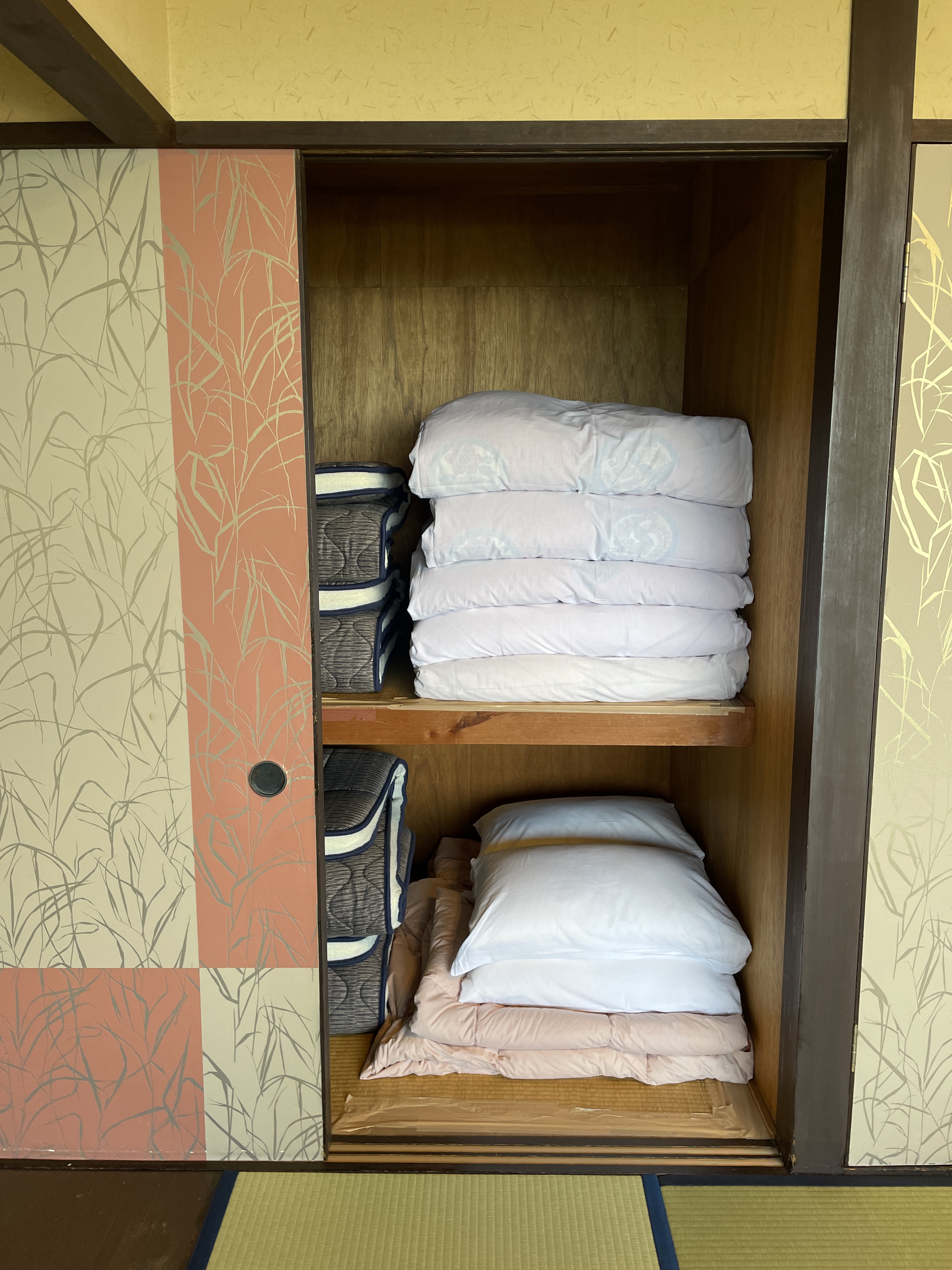 押し入れにはお布団。お布団は夕食の時間に敷いておいてくださいました。