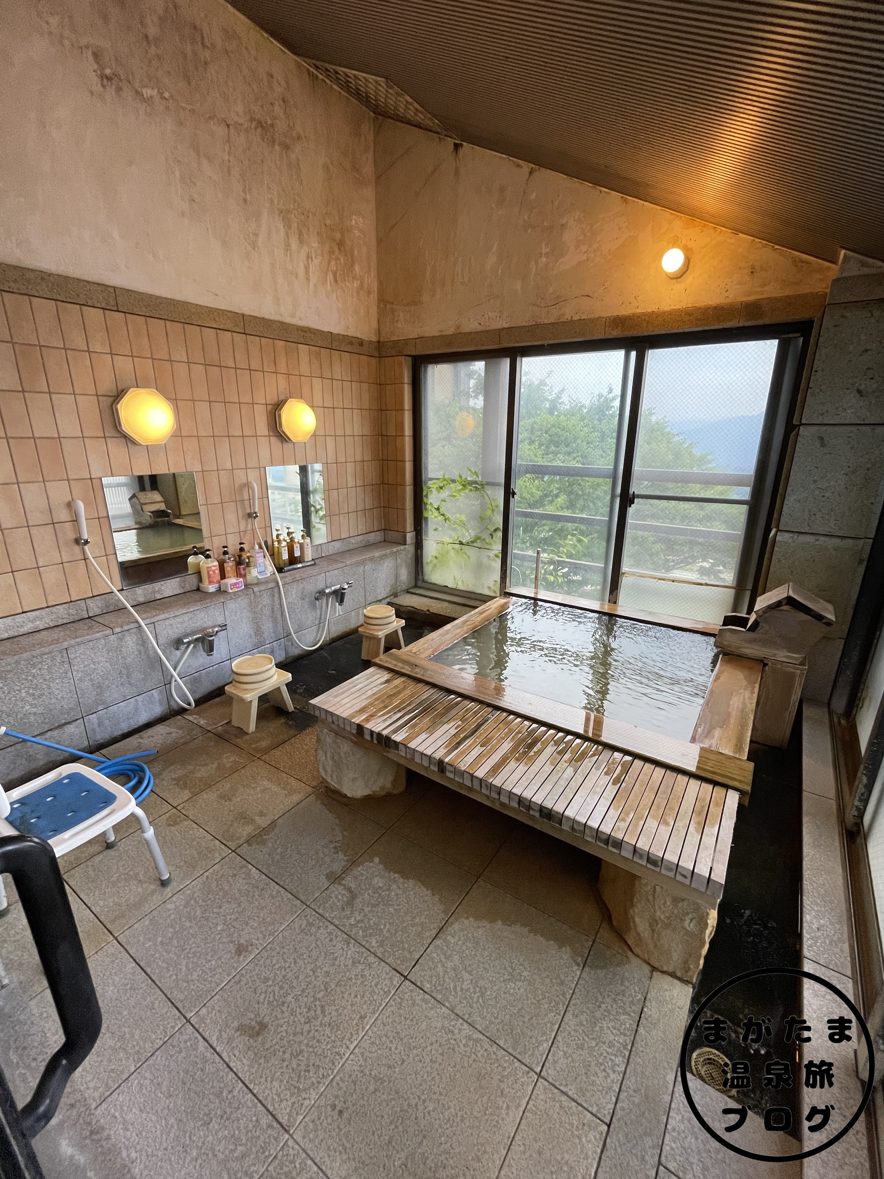 檜の浴槽です。体の負担なくゆっくり入湯できます。