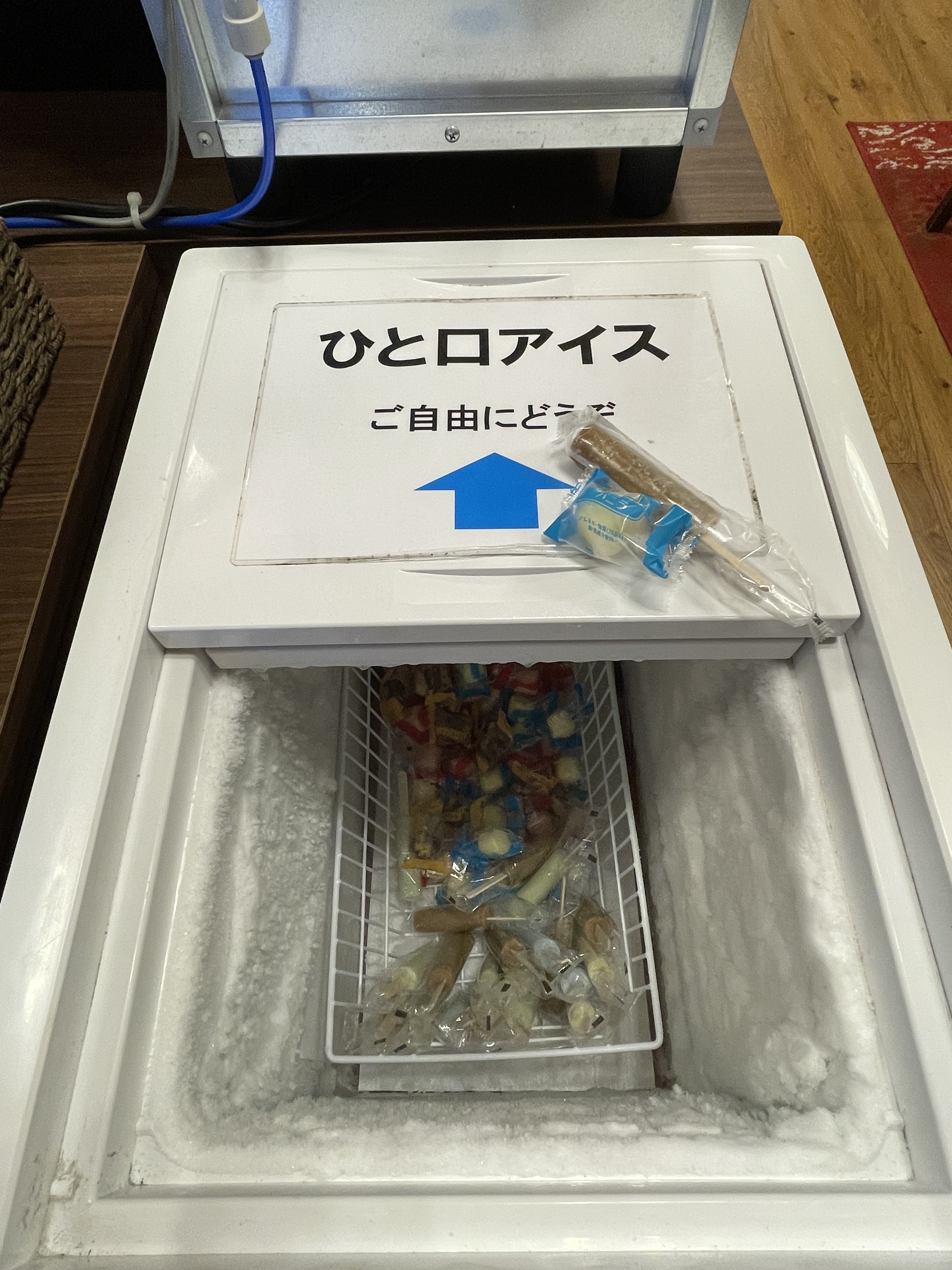フリードリンク用のシロップなど、ひと口アイスもご自由にどうぞと、湯上りに最高ですね♪