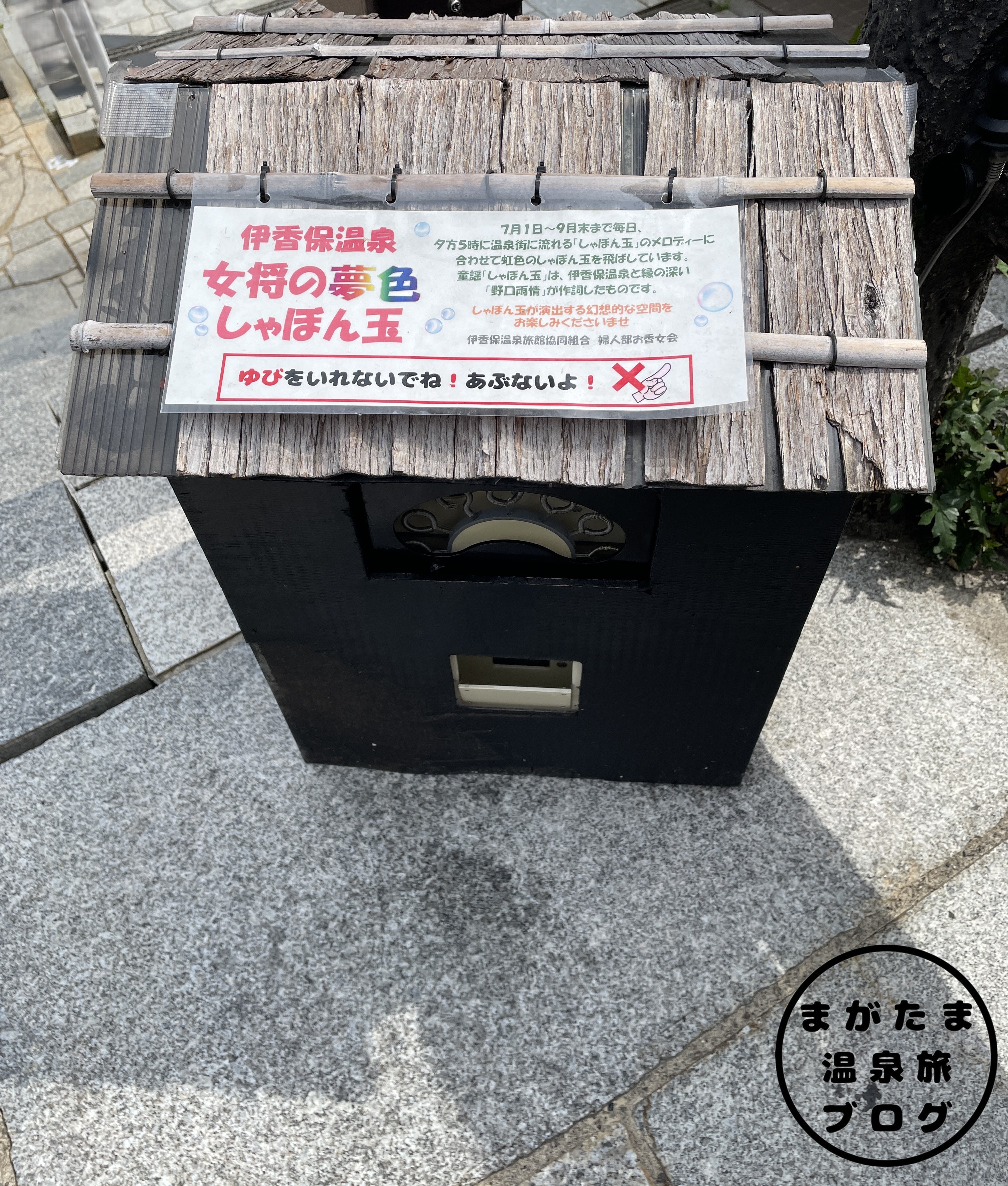 夕方17時に温泉街からしゃぼん玉を飛ばしていました。