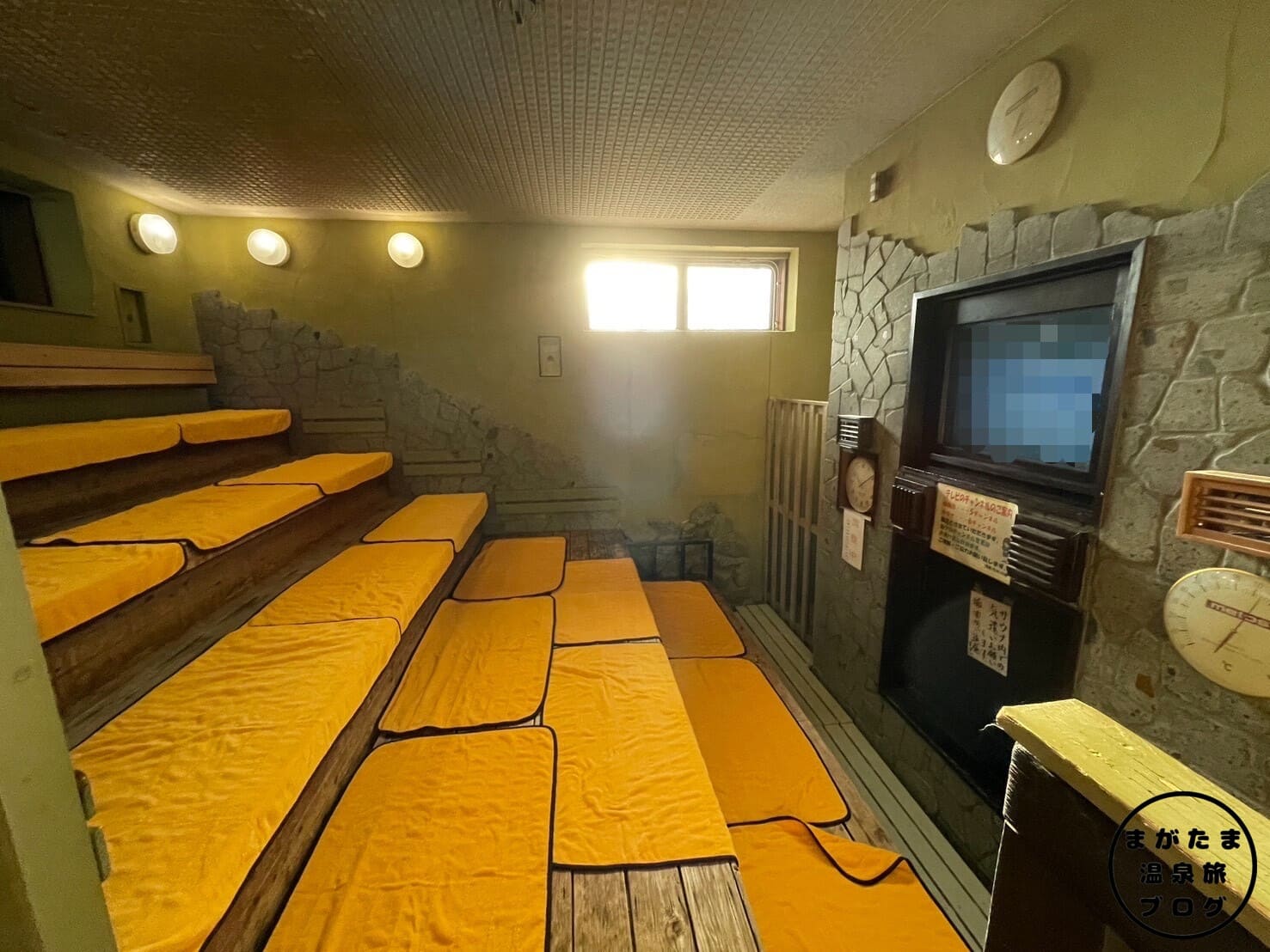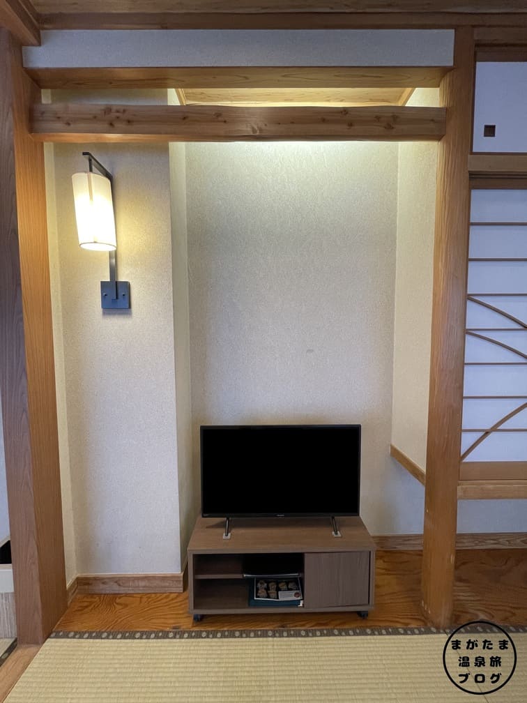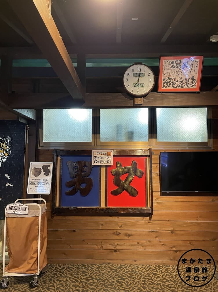 露天ひのき風呂・檜の湯まで戻ってきました。檜の湯では、テレビを見ることができます。
