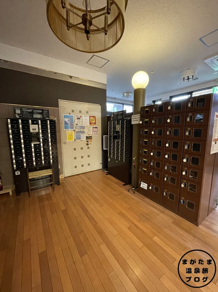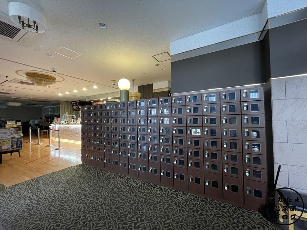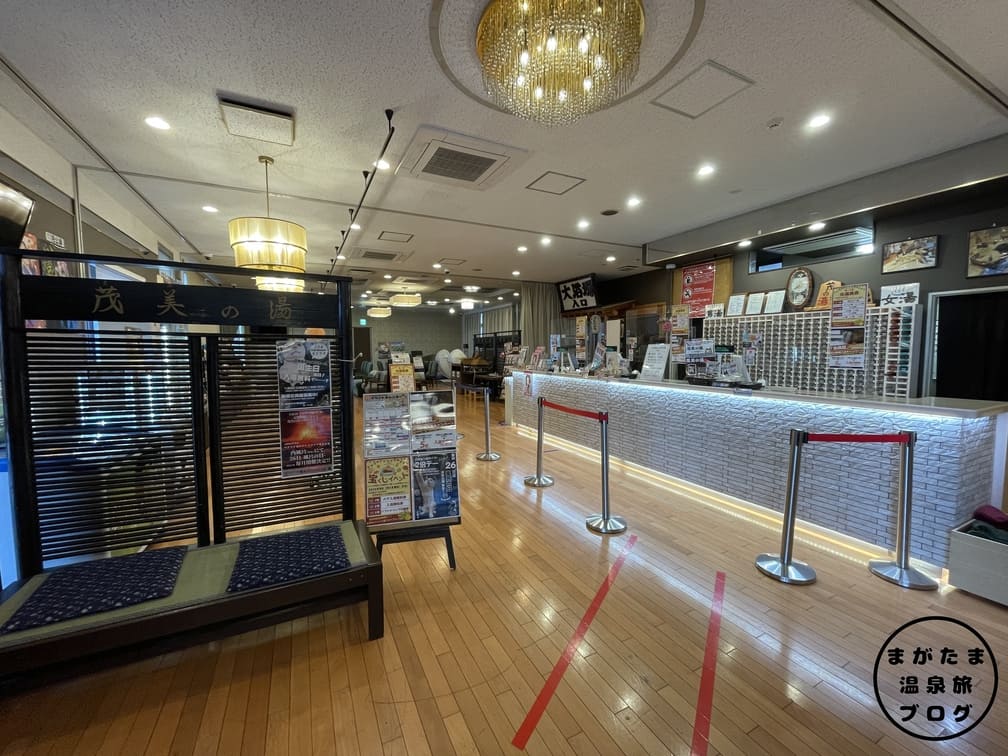 1階のフロントです。日帰り温泉・宿泊・観劇の受付は、すべてフロントで行います。