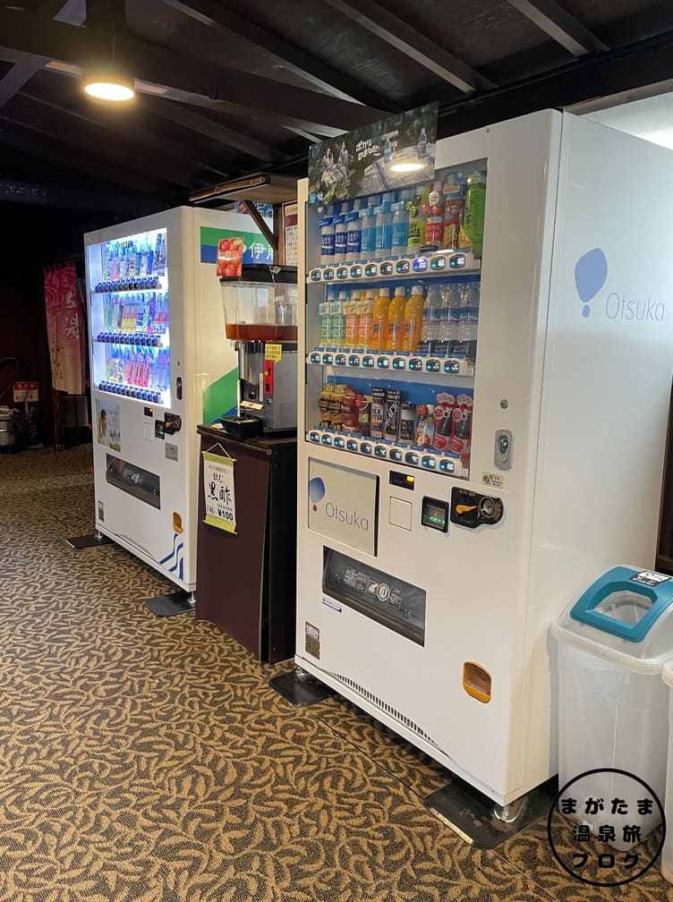 (左)階段をのぼると右側に、お菓子販売機が2台並んでいます。
